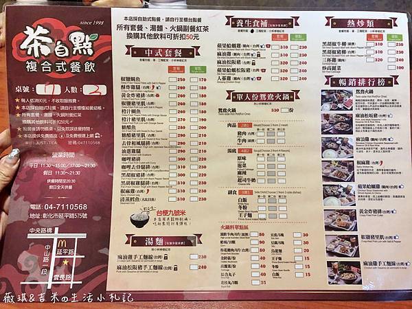 來看看menu吧! 每人低消90元,沒有收服務費;