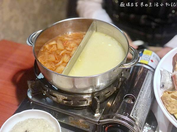 照片裡是泡菜跟起司牛奶這兩種口味,單人也可以吃鴛鴦鍋真的很優耶!!!