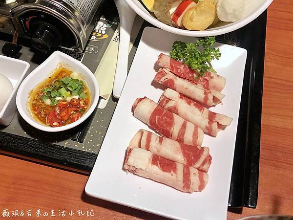 松阪豬肉脆脆的一咬即斷,沒有煮得過老柴,我很喜歡;如果覺得太清淡還有一碟辣醬可沾。