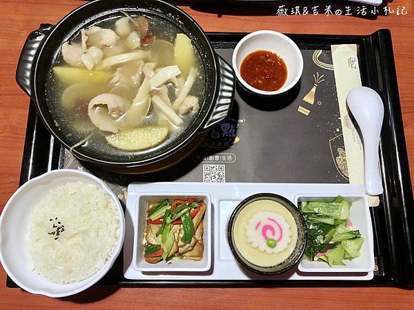 除了雞腿外,套餐還有附湯跟三種小菜跟一碗白飯,營養均衡又可以吃飽。